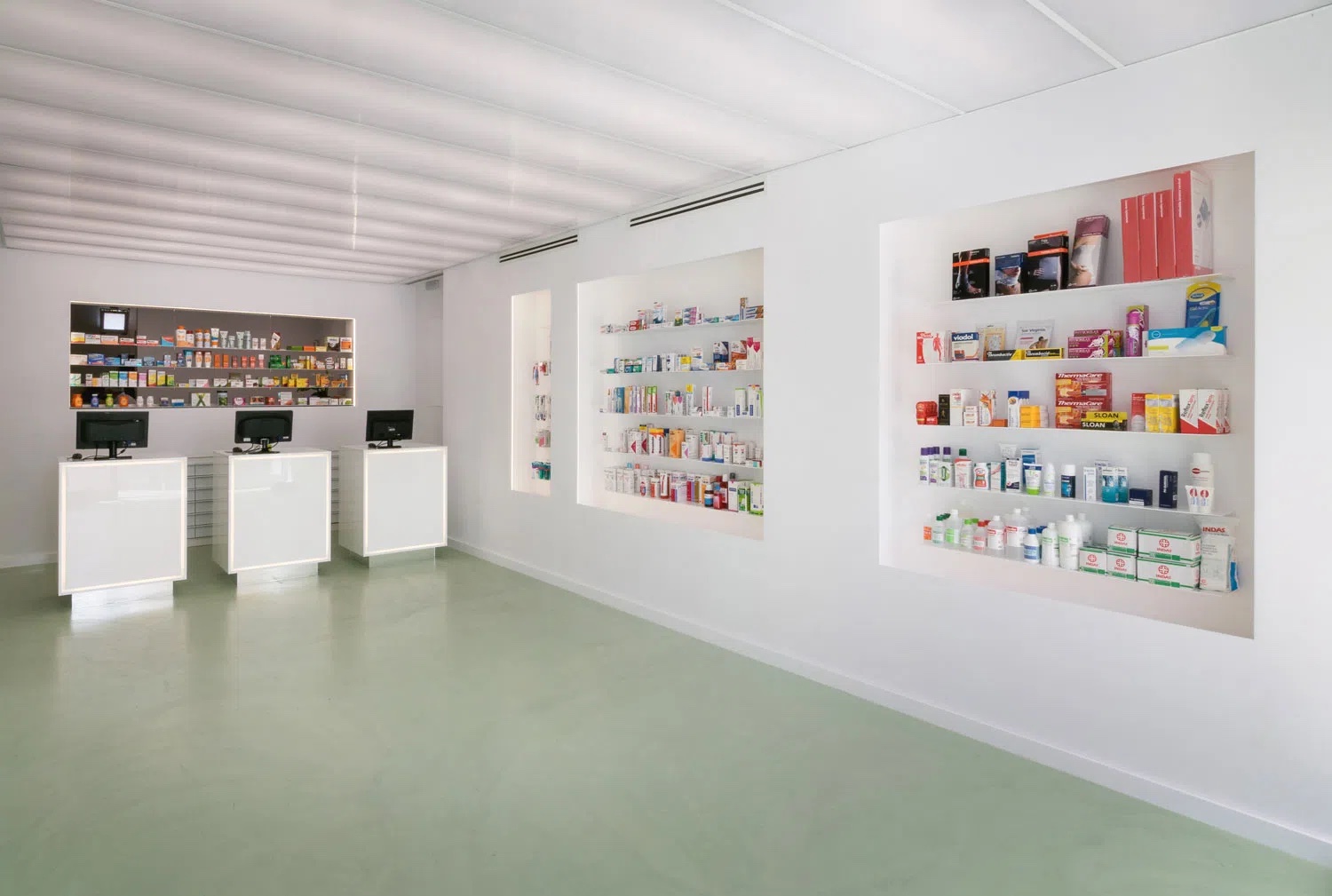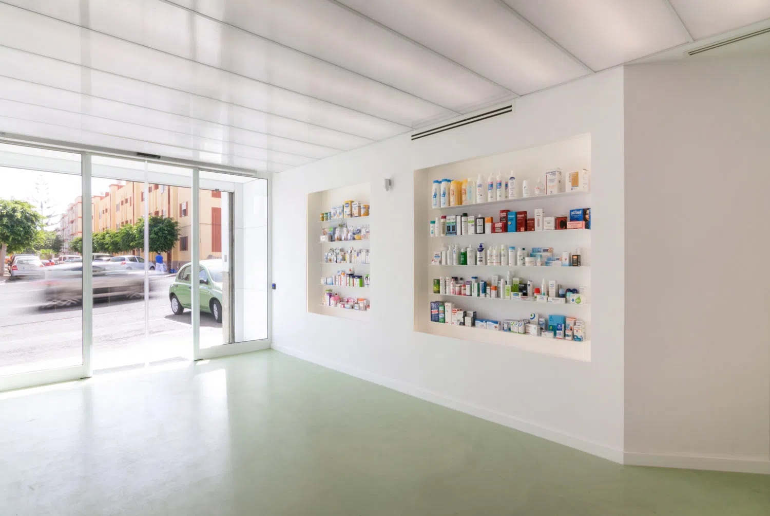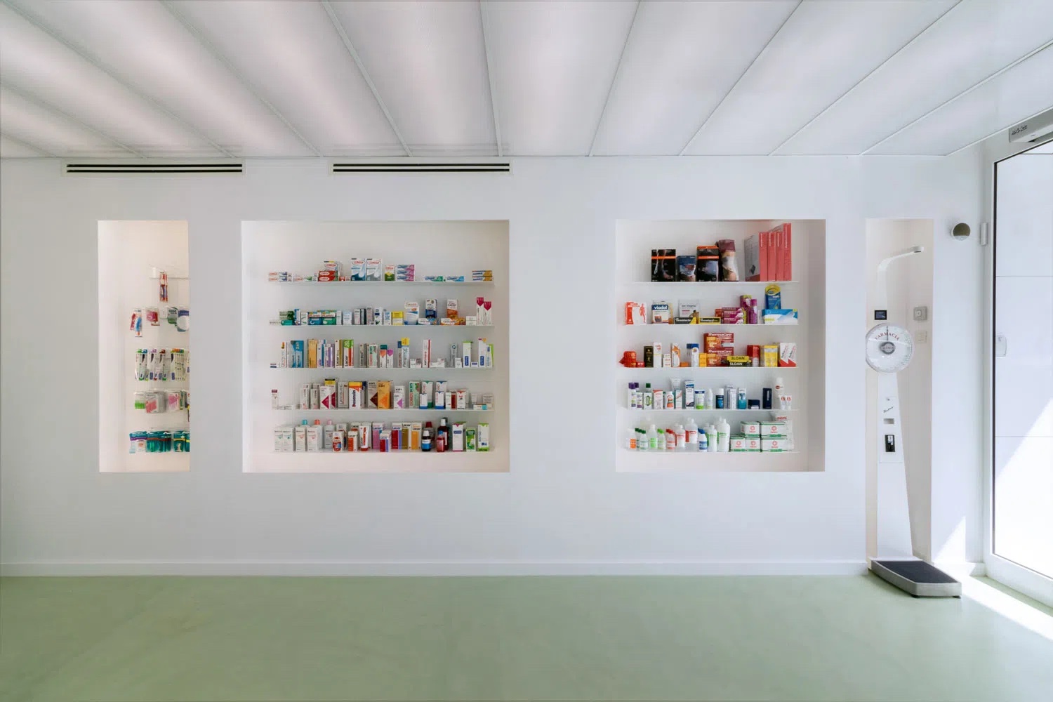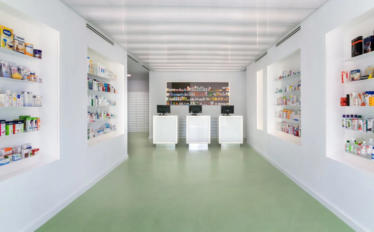 For the reconfiguration of the new premises for the pharmacy, the aim is to achieve a serene and fresh atmosphere. We are in a town pharmacy, where the main income comes from the sale of prescription drugs.